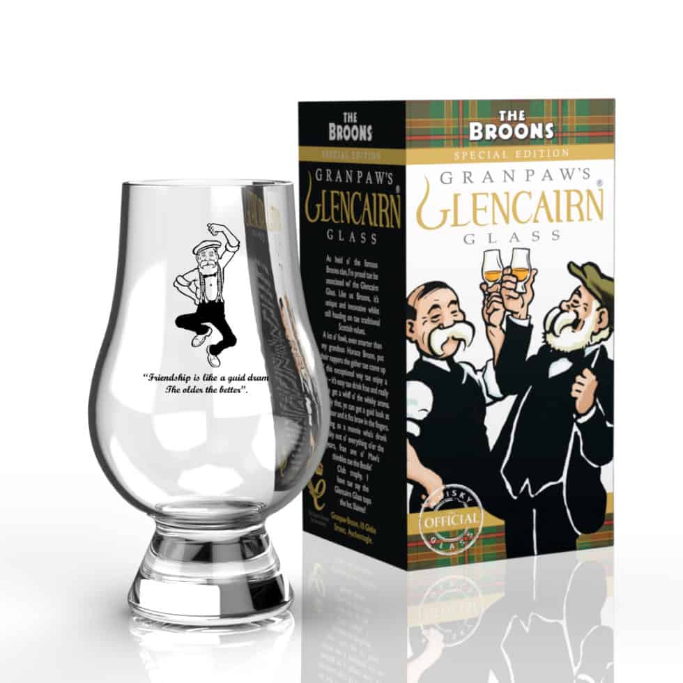Featuring Granpaw Broon himself and inscribed with "Friendship is like a guid dram, the older the better" this glass is the perfect gift for whisky fans, supplied in a bespoke Broons gift carton.