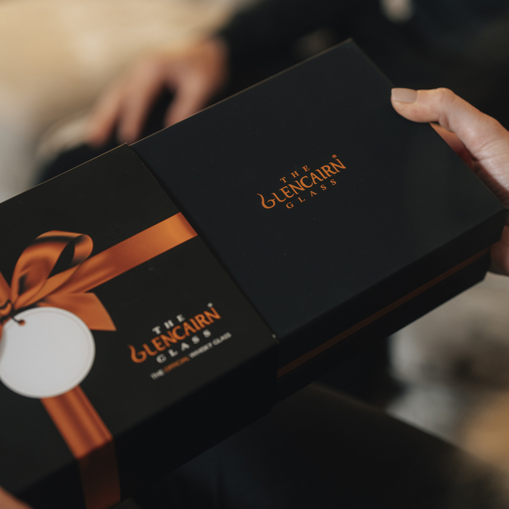 Drink your dram from the official glass for whisky - the Glencairn Glass! The wide crystal bowl allows for the fullest appreciation of the whisky’s colour and the tapering mouth of the glass captures and focuses the aroma on the nose. Supplied in a luxury black gift box, these glasses are perfect for gifting to a whisky lover.
