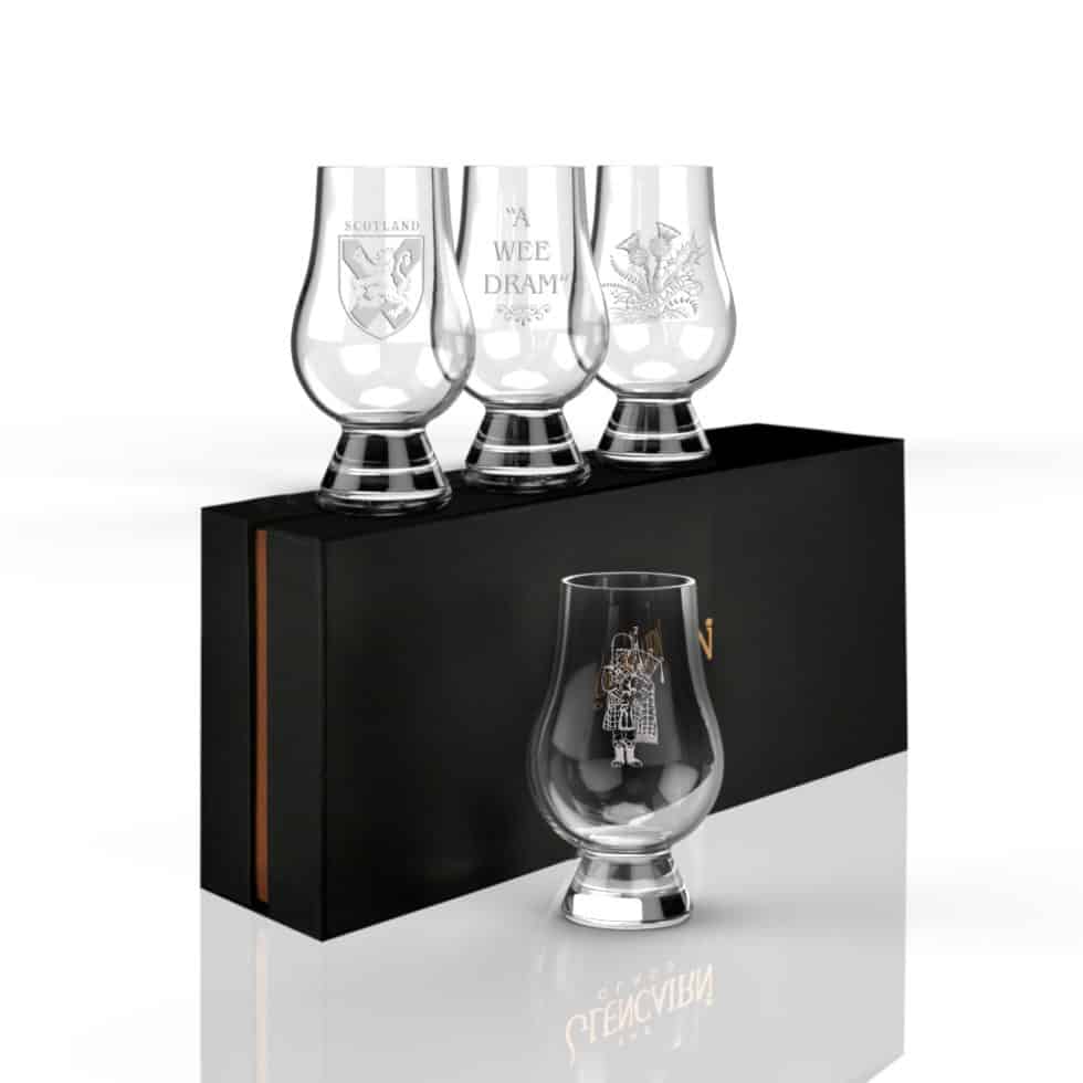 Ideal for blenders and whisky enthusiasts alike, the Glencairn Glass is considered the definitive glass for whisky. Featuring four Glencairn Glasses decorated with four different Scottish designs, this gift set is just perfect for a whisky lover who loves Scotland just as much.
