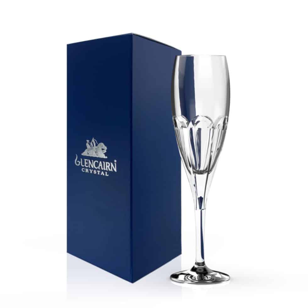 The Lewis collection is a weighted and resilient range that features a thumb cut pattern on the crystal, creating a sophisticated faceted effect. Celebrate birthdays, anniversaries and other occasions with a glass of bubbly. Add a personal touch with personalised crystal engraving. Supplied in a navy gift carton or if you’re looking for an extra special gift, why not upgrade to a beautiful gift set? Available in Set of 2 or Set of 6