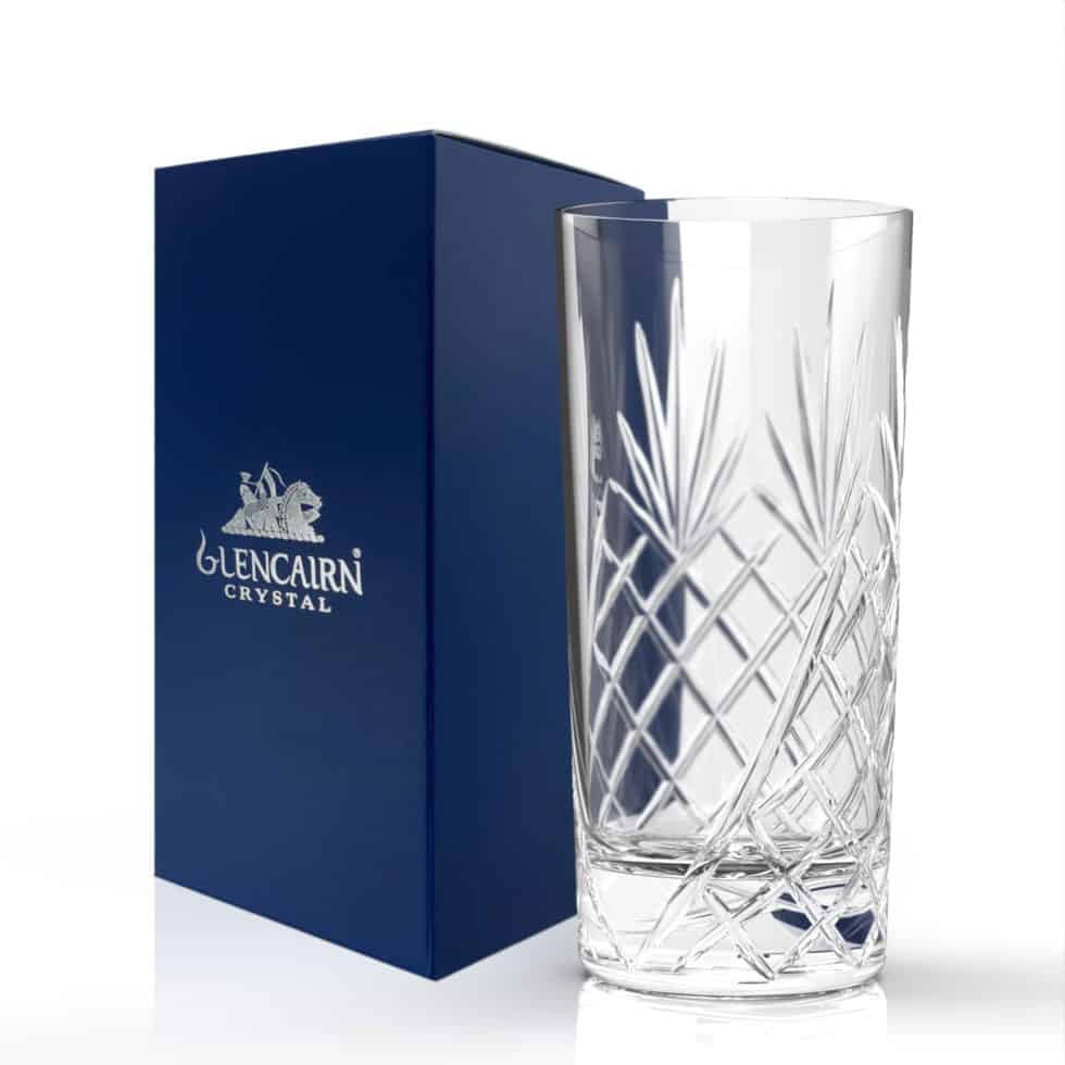The Skye collection is our ultimate interpretation of traditional cut crystal which features one blank panel for personalisation. The highball glass is a classic vessel for appreciating your favourite spirit with room for mixers and ice cubes.