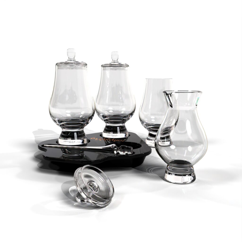 Presenting The Glencairn Whisky Connoisseur Bundle—a quintessential set for whisky enthusiasts. This elevated tasting kit comprises three hand-blown Glencairn Glasses, each complemented by a tasting cap for a heightened sensory experience. Additionally, the bundle features a Glencairn Pipette for precise water addition and a mini Glencairn water jug. Ideal for at-home tasting sessions.